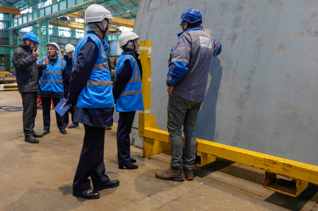 Le 28 novembre 2025, CMN – Constructions Mécaniques de Normandie a eu le plaisir d’accueillir Cécile Sellier, Ingénieure Générale Hors Classe de l’Armement et Directrice générale du Service de Soutien de la Flotte (SSF), accompagnée de Bertrand Pouliquen, Capitaine de vaisseau, Directeur central adjoint, et Philippe Barrallon, Capitaine de vaisseau, Directeur d’antenne SSF Cherbourg. Une visite au cœur de nos ateliers pour mettre en lumière nos savoir‑faire, nos projets en cours et nos exigences.